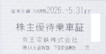 ● 金券ショップチケットレンジャーでは、京王電鉄株主乗車証(切符タイプ)2026年5月31日期限につきまして、買取価格が表示されている場合は買取を行なっております。