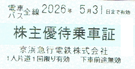 京浜急行(京急)株主乗車証(切符タイプ)2026年5月31日期限の買取の注意事項