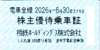 相模鉄道(相鉄)株主乗車証(切符タイプ)2026年6月30日期限の買取の注意事項