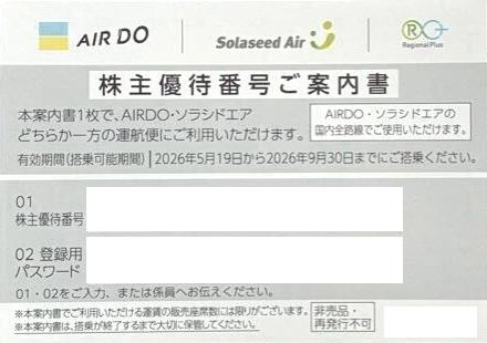 リージョナルプラス【SNJ(ソラシドエア)/AIR DO(エアドゥ)】株主優待券 <2026年5月19日〜2026年9月30日期限>_課税対象商品の買取