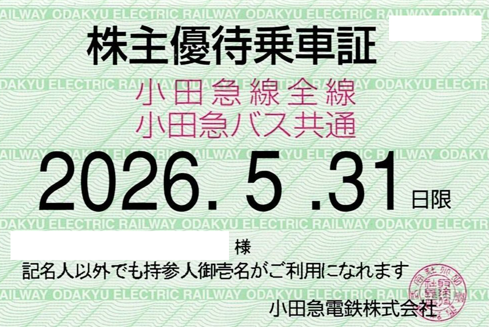 小田急電鉄株主優待(定期型)電車・バス全線 2026年5月31日期限の買取の注意事項