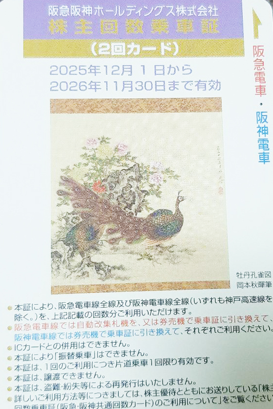 阪急阪神ホールディングス(阪急阪神HD)株主優待乗車証 2回カード 2026年11月30日期限の買取の注意事項