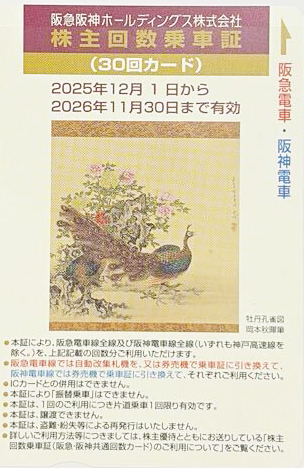 ● 金券ショップチケットレンジャーでは、阪急阪神ホールディングス(阪急阪神HD)株主優待乗車証 30回カード 2026年11月30日期限につきまして、買取価格が表示されている場合は買取を行なっております。