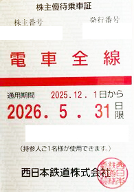 西日本鉄道(西鉄)株主優待(定期型)電車全線 2026年5月31日期限の購入(通信販売)