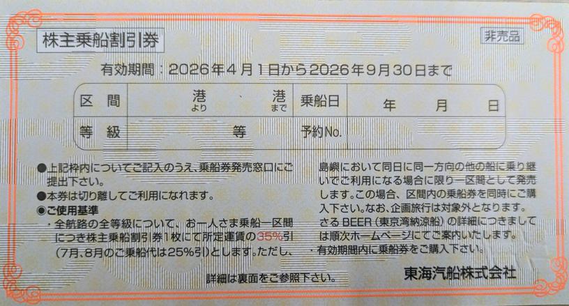 東海汽船株主優待券 2026年9月30日期限_課税対象商品の購入(通信販売)
