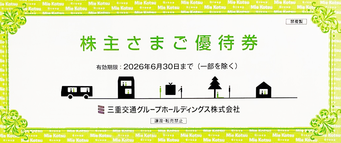 ● 金券ショップ チケットレンジャーでは、三重交通株主優待(500株以上1000株未満) 冊子タイプ 共通路線バス片道乗車券4枚他 2026年6月30日期限の画像で示している絵柄・表記事項等と実際にお手元に届く三重交通株主優待(500株以上1000株未満) 冊子タイプ 共通路線バス片道乗車券4枚他 2026年6月30日期限の絵柄・表記事項が異なる場合がございます。ただし、三重交通株主優待(500株以上1000株未満) 冊子タイプ 共通路線バス片道乗車券4枚他 2026年6月30日期限の使用の用途や性質の変更はございません(表記内容や金券の実質的な効果は弊社では保証いたしかねますので、その際には恐れ入りますが当該金券の発行元にお問い合わせください)。
