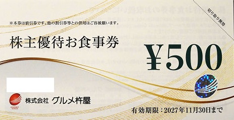 グルメ杵屋株主優待券 500円券 2027年11月30日期限の購入(通信販売)