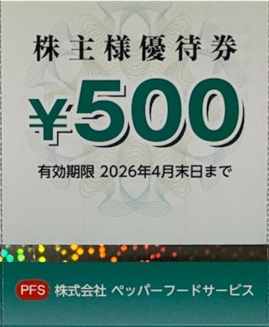 ペッパーフードサービス株主優待券 500円券 2026年4月30日期限の購入(通信販売)