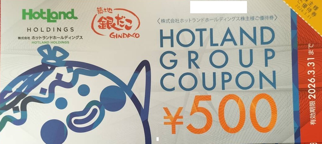 ホットランド株主優待券(築地銀だこ) 500円券 2026年3月31日期限の購入(通信販売)