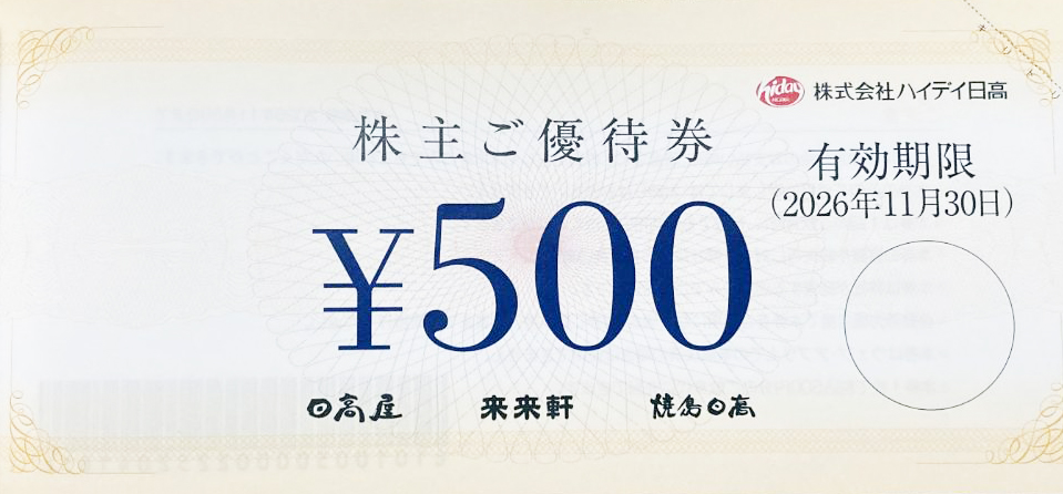 ハイデイ日高(日高屋)株主優待券 500円券 2026年11月30日期限の買取