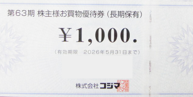 コジマ株主優待券 1,000円券 2026年5月31日期限の金券(格安チケット)のご購入に際しての注意事項