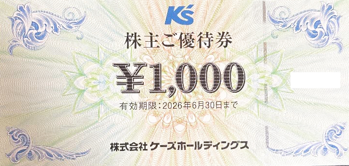 ケーズホールディングス株主優待券(ギガス・ケーズデンキ他) 1,000円券 2026年6月30日期限の買取