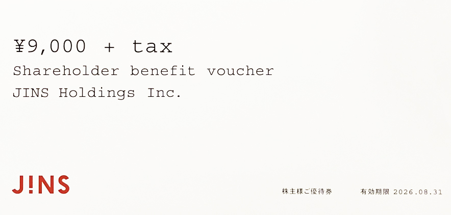JINS(ジンズHD)株主優待券 9,000円券 2026年8月31日期限の買取