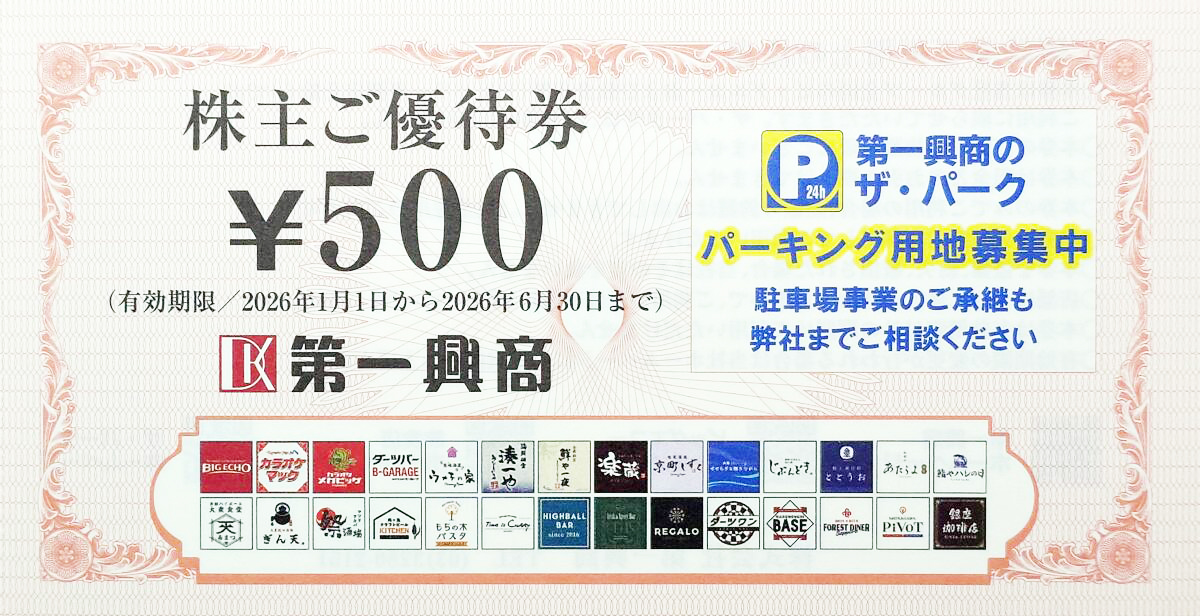 第一興商(ビッグエコー)株主ご優待券 500円券 2026年6月30日期限の買取