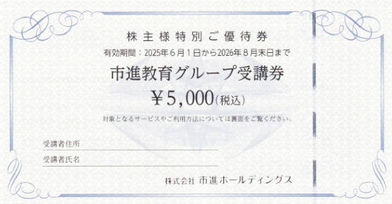 市進ホールディングス株主優待券(市進教育グループ受講券) 5,000円券 2026年8月31日期限の買取