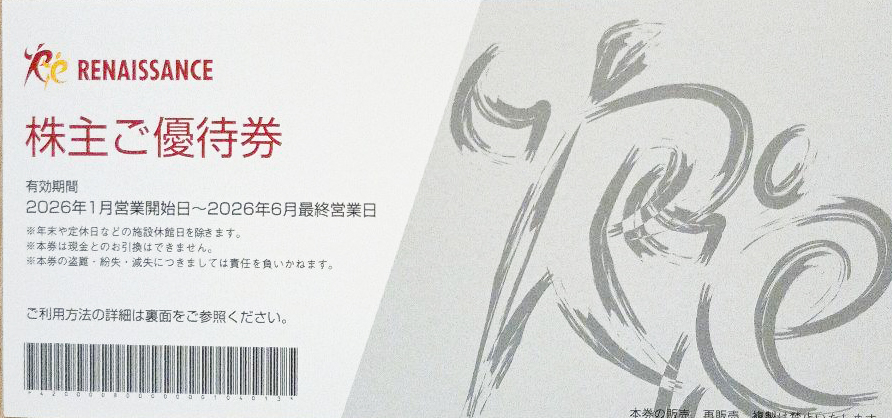 ● 金券ショップ チケットレンジャーでは、ルネサンス(スポーツオアシス)株主ご優待券 2026年6月30日期限の画像で示している絵柄・表記事項等と実際にお手元に届くルネサンス(スポーツオアシス)株主ご優待券 2026年6月30日期限の絵柄・表記事項が異なる場合がございます。ただし、ルネサンス(スポーツオアシス)株主ご優待券 2026年6月30日期限の使用の用途や性質の変更はございません(表記内容や金券の実質的な効果は弊社では保証いたしかねますので、その際には恐れ入りますが当該金券の発行元にお問い合わせください)。