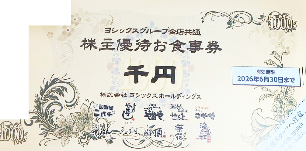 ヨシックス株主優待 や台やグループ全店共通お食事券 1,000円券 2026年6月30日期限_課税対象商品の購入(通信販売)