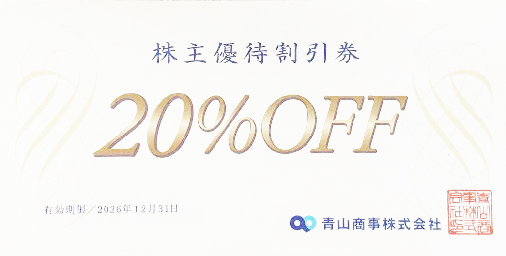 青山商事(洋服の青山他)株主優待券(20%割引券)2026年12月31日期限_課税対象商品の購入(通信販売)