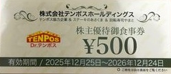 テンポスホールディングス(テンポスバスターズ)株主優待券 500円券 2026年12月24日期限の購入(通信販売)