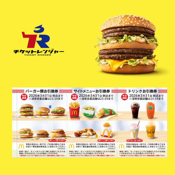 【ナイトセール】日本マクドナルドホールディングス(マック)株主優待券(バーガー+ドリンク+ポテト引換券)2026年3月31日期限【買取は最大60枚まで】